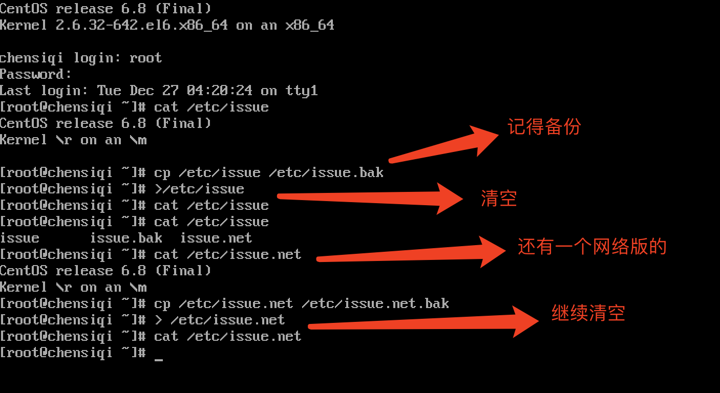 - 我们登陆以后在/etc下找到issue这个文件以及issue.net这个文件,cat下。看看是不是很眼熟。
