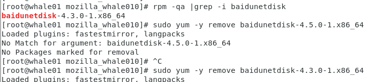 rpm -qa |grep -i baidunetdisk #查看已安装的版本 sudo yum -y remove baidunetdisk-4.5.0-1.x86_64 #卸载已安装的百度网盘