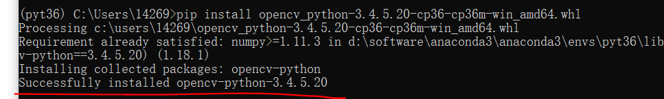 pip install opencv_python-3.4.5.20-cp36-cp36m-win_amd64.whl