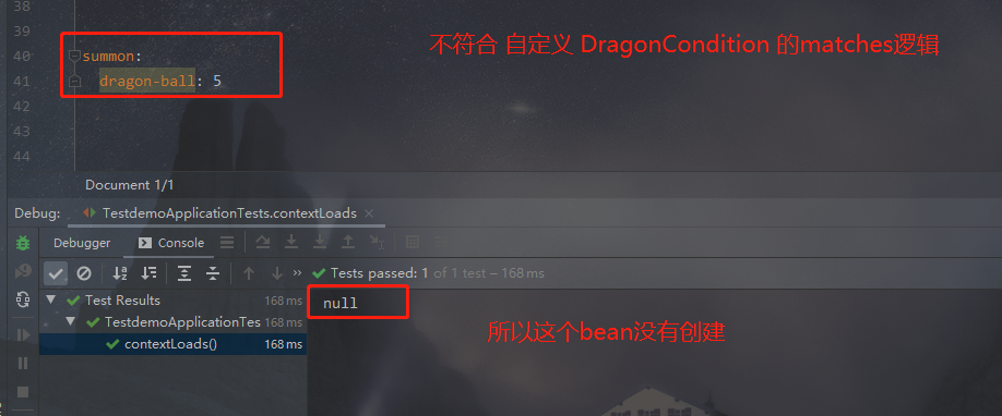 执行,可以看到,因为我们条件匹对符合,神龙bean能成功创建: