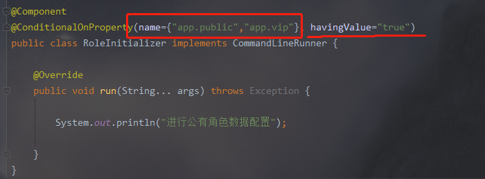 app.public 值为 true 且 app.vip 值为 high 时 ,才能正常实例化RoleInitializer这个bean。