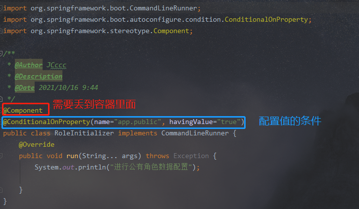 RoleInitializer 这个bean,如果想让它正常实例化,我们需要检测yml配置文件里面,app.public的值是否为 true 且 app.vip 的值 也为 true: