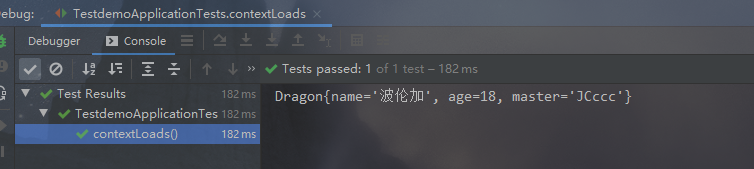然后到测试类里面简单写个测试方法,看看Dragon 这个bean是否能成功被创建 :