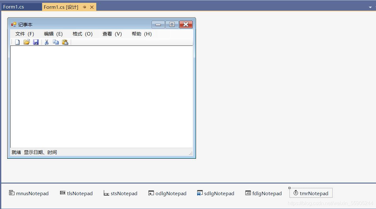 单击工具栏→右下角属性→修改Name属性为“tlsNotepad”
