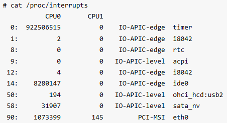 ///proc/interrupts只记录当前注册(还没卸载)的中断。更祥细的要看/proc/stat