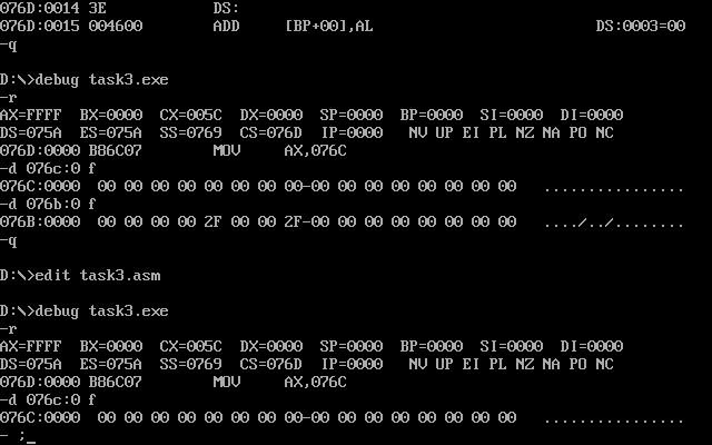 通过d命令查询即可看出,程序正确地将data1和data2段的内容相加