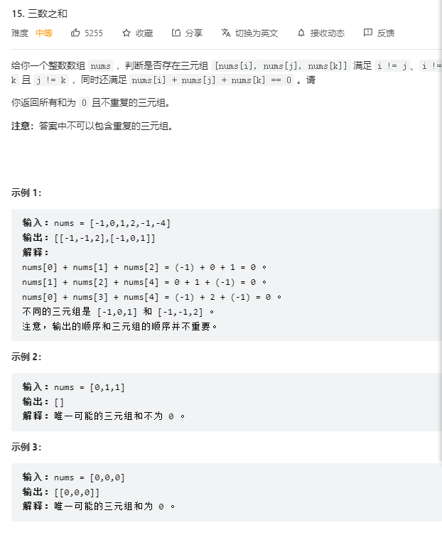 LeetCode腾讯精选50题 -- 三数之和