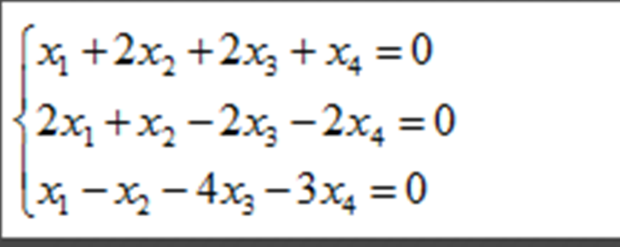 clear,clc a=[1 2 2 1;2 1 -2 -2;1 -1 -4 -3]; format rat %结果用有理分数显示 z=null(a,'r') %方程的通解如下 syms k1 k2 x=k1*z( : ,1)+k2*z( : ,2) z = 2 5/3 -2 -4/3 1 0 0 1 x = 2*k1 + (5*k2)/3 - 2*k1 - (4*k2)/3 k1 k2