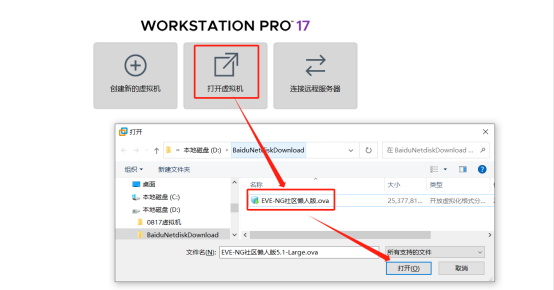 安装时,仅需在虚拟机中点击“打开虚拟机”,选定下载的后缀为ova文件,经过等待即可完成安装。