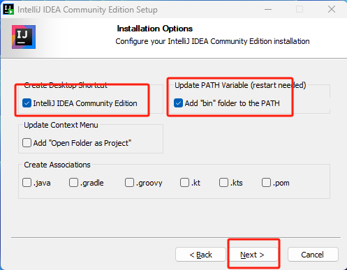 自定义安装在E盘的IDEA Community 2023文件夹下,也可以选择不更改直接点击Next;