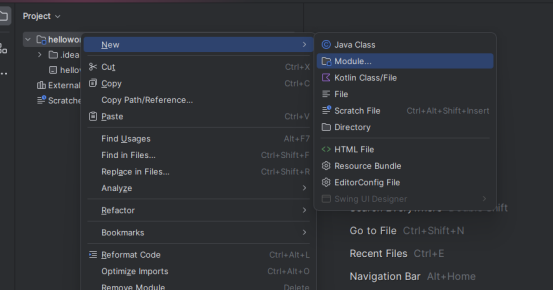 IDEA创建是:项目(projefct)、模块(module)、包(package)、类(class)