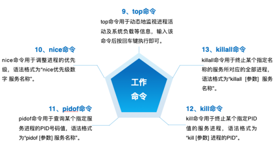 (7) ps命令:ps命令用于查看系统中的进程状态,英文全称为“processes”,语法格式为“ps [参数]”。