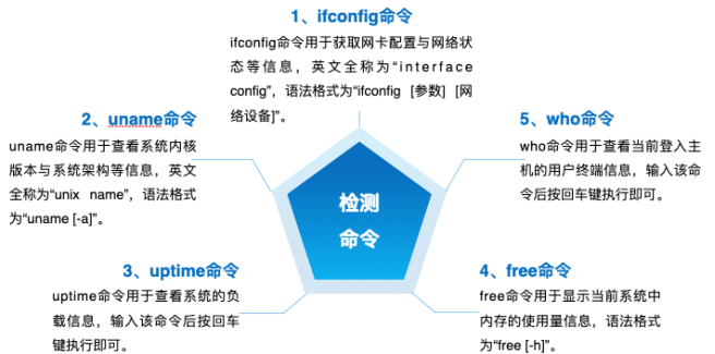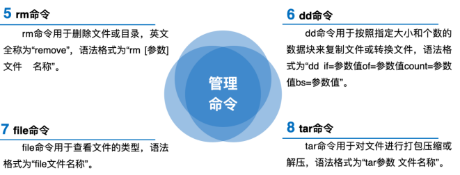 (2) date命令:date命令用于显示或设置系统的时间与日期,语法格式为“date [+指定的格式]”。