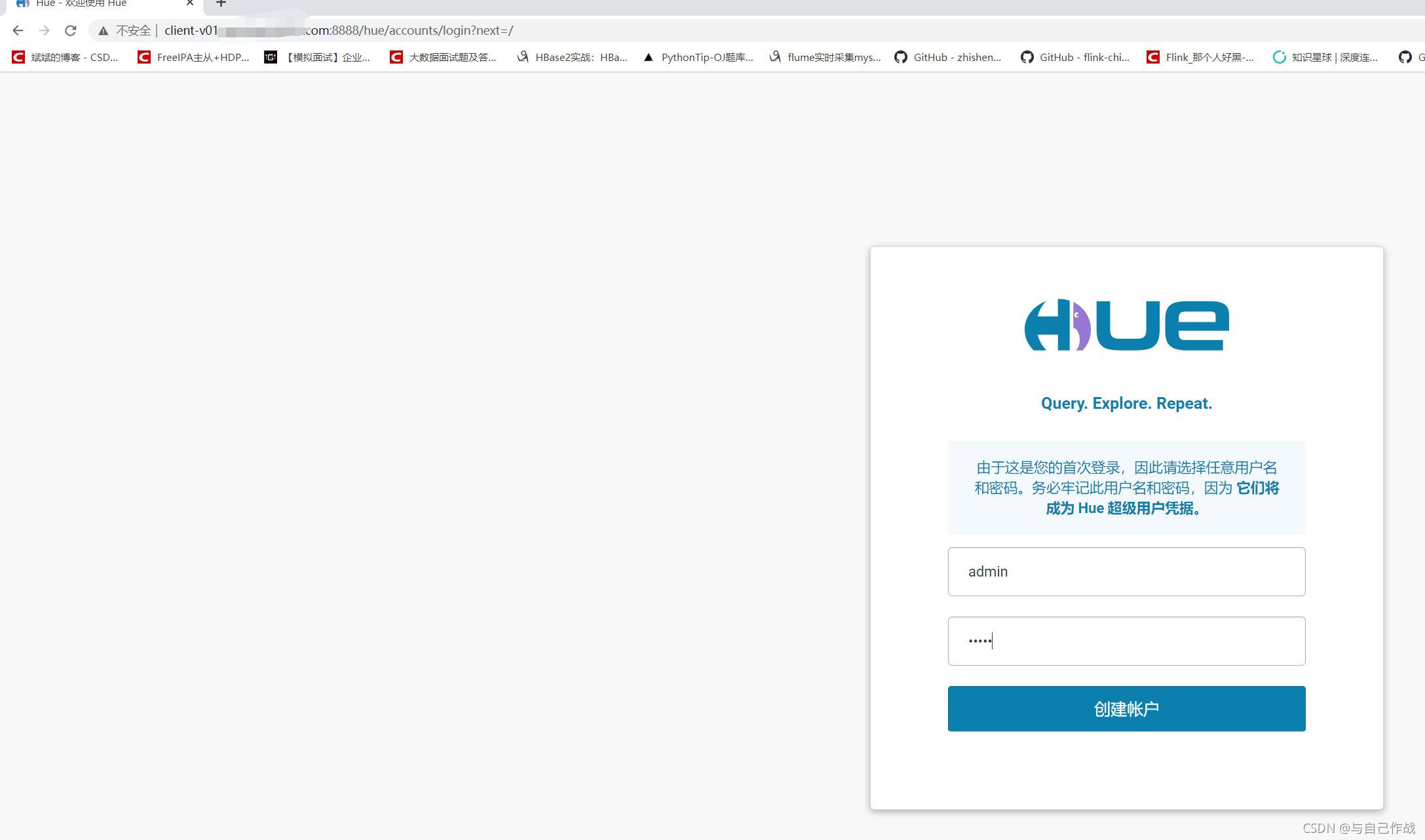 这个时候,我们应该可以访问 Hue WEB UI 了,打开链接: