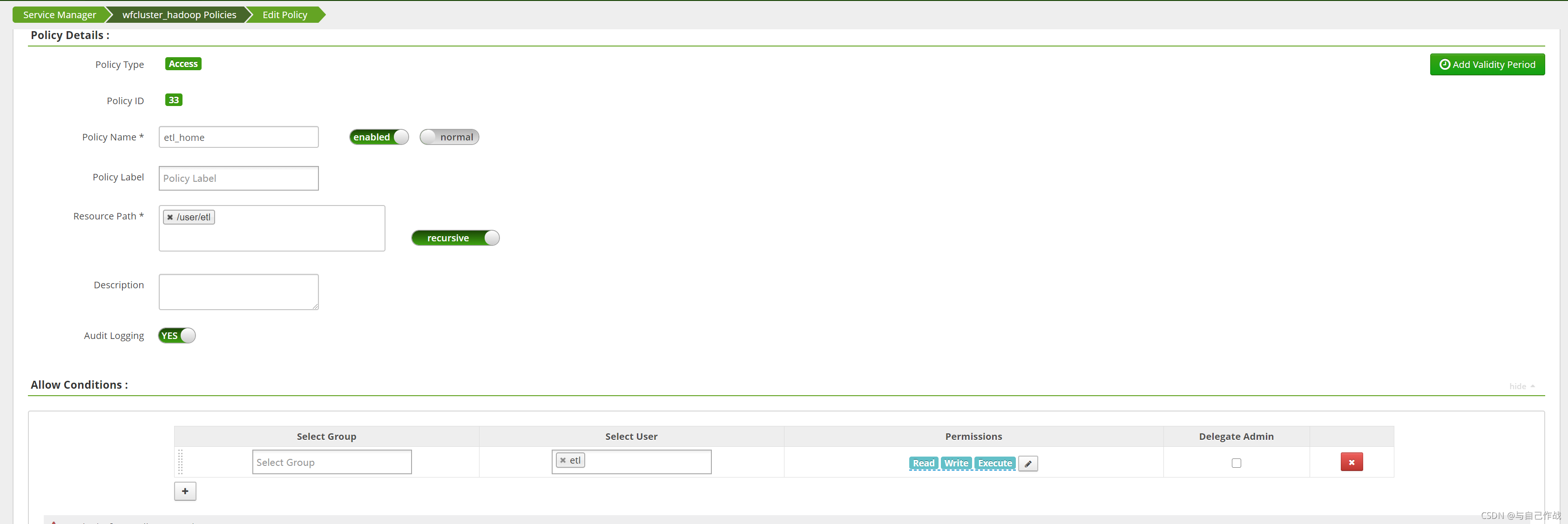 9、创建用户的hdfs 家目录,并在 Ranger 里授权