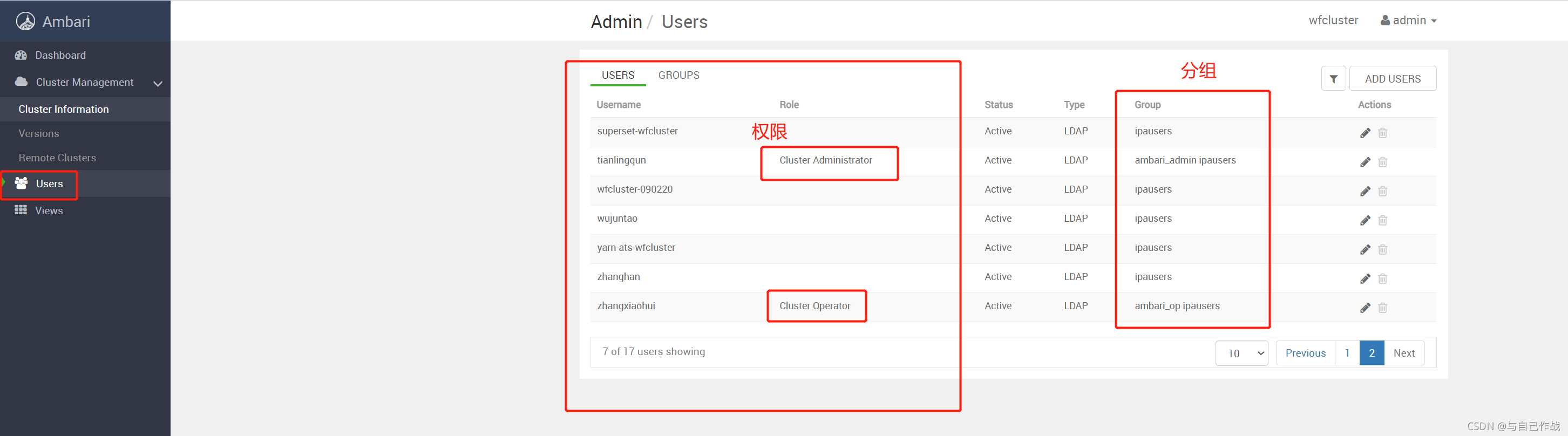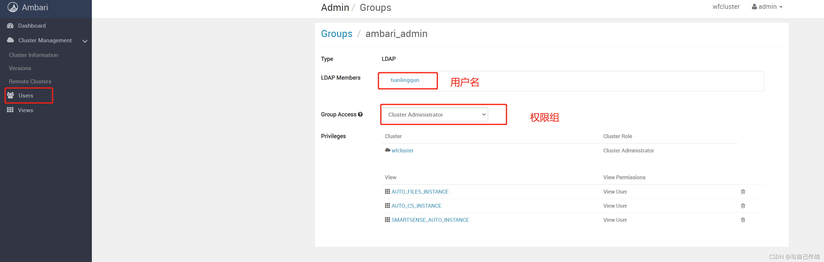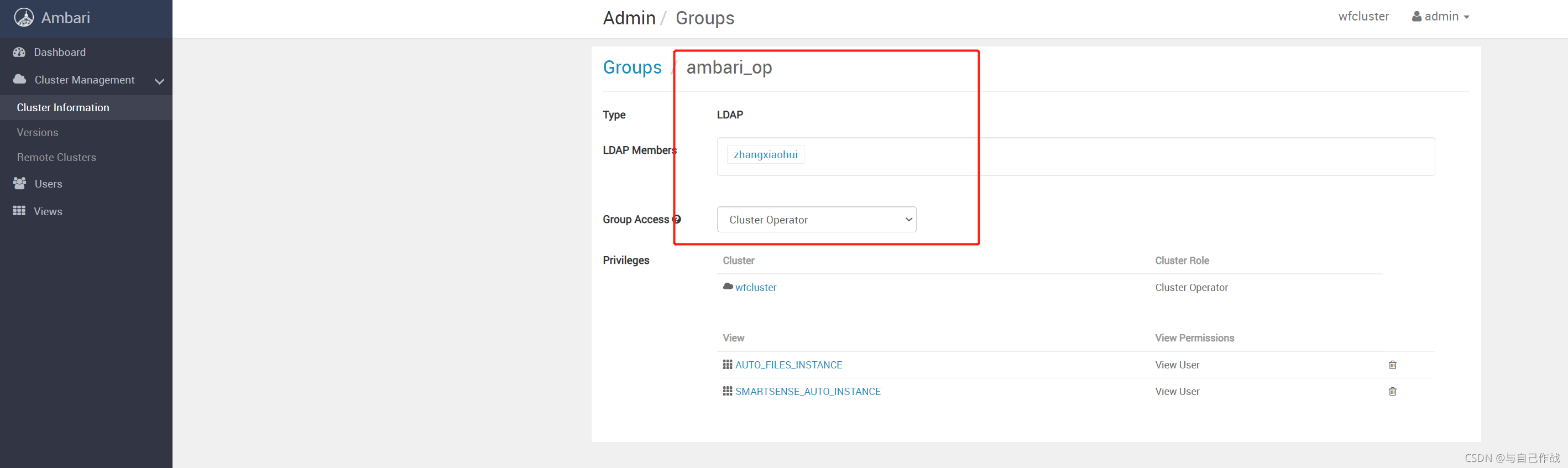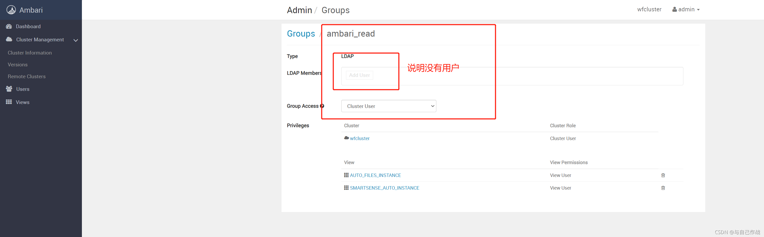 理员组;2). ambari_op 是操作员组;3). ambari_read 是“只读”帐号组