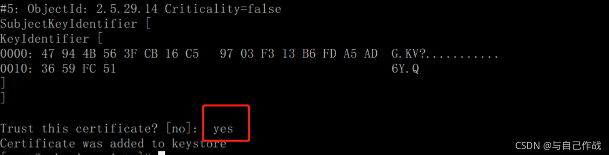 $JAVA_HOME/bin/keytool -import -trustcacerts -alias root \
