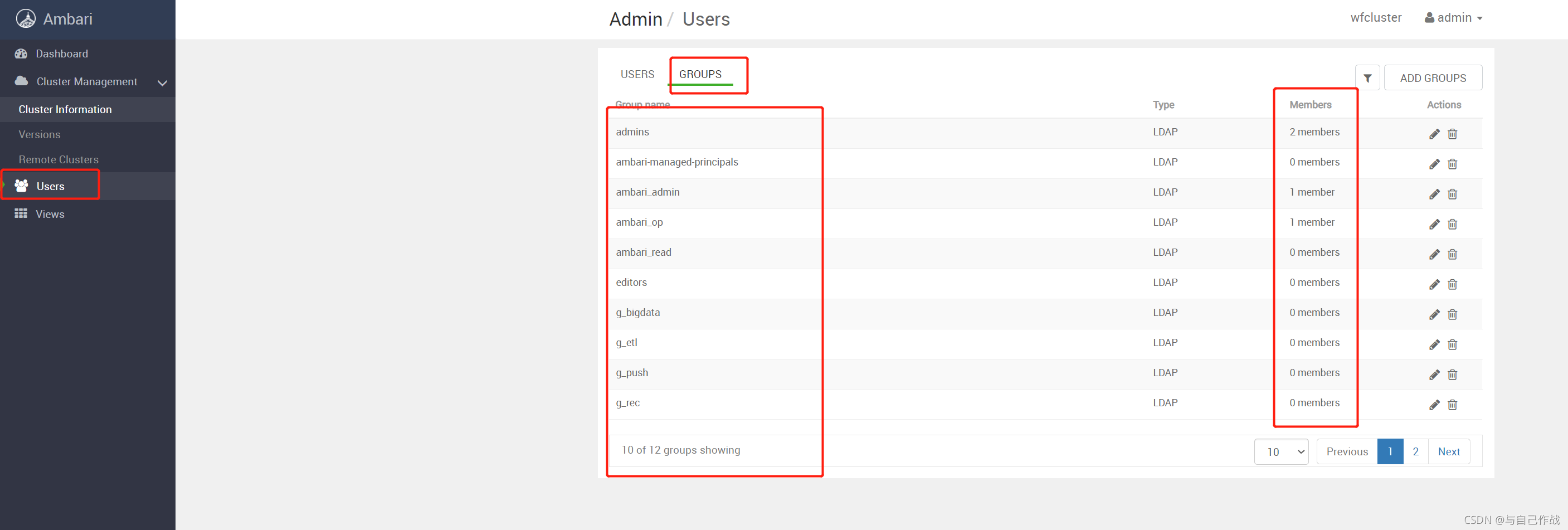 注意:如果导⼊入了了多余的⽤用户组信息,我们可以直接进 ambari 元数据