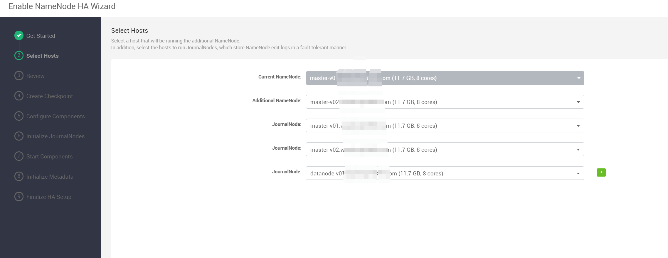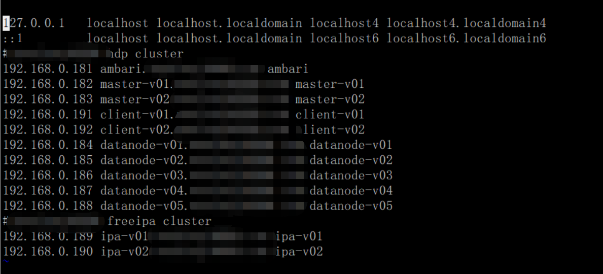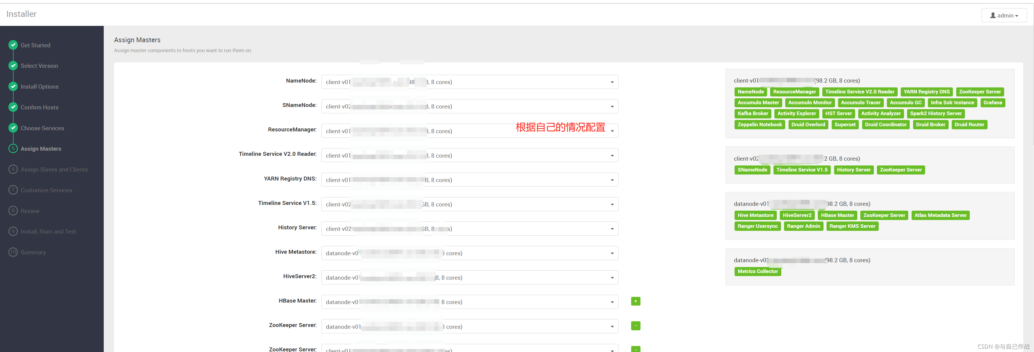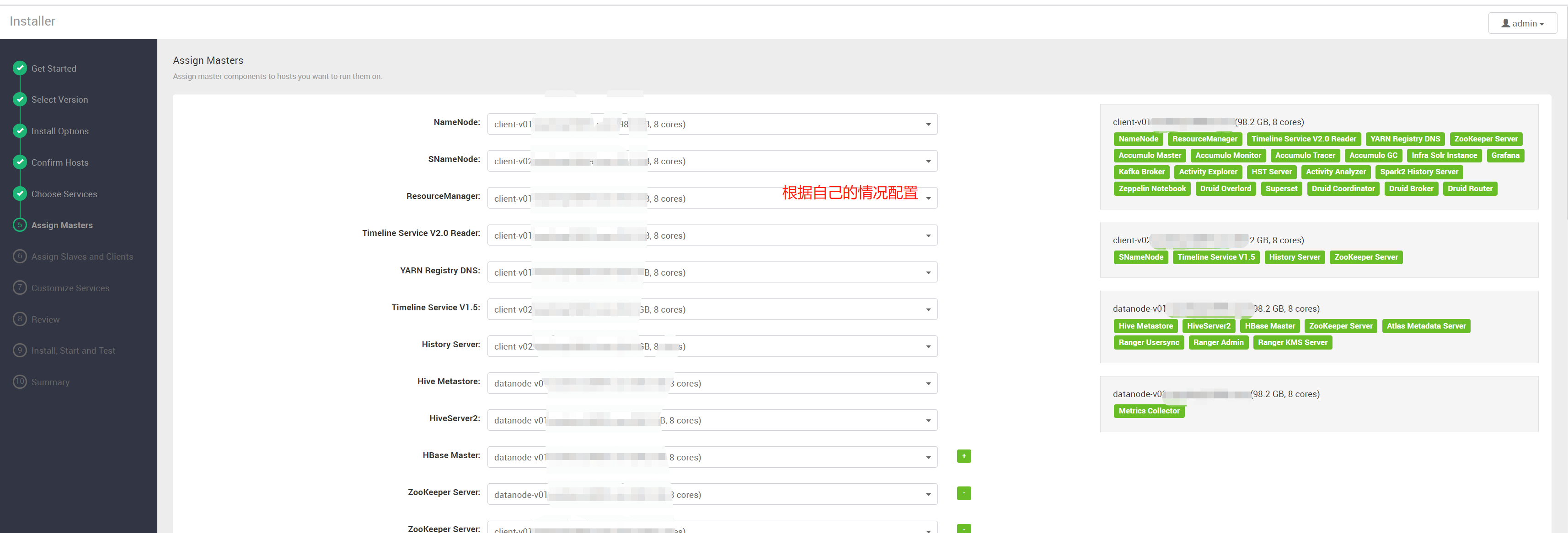 基中主要包括:hdfs, yarn, hbase 的高可用相关进程; Hive metadata, Hive server进程 及 Zookeeper进程等