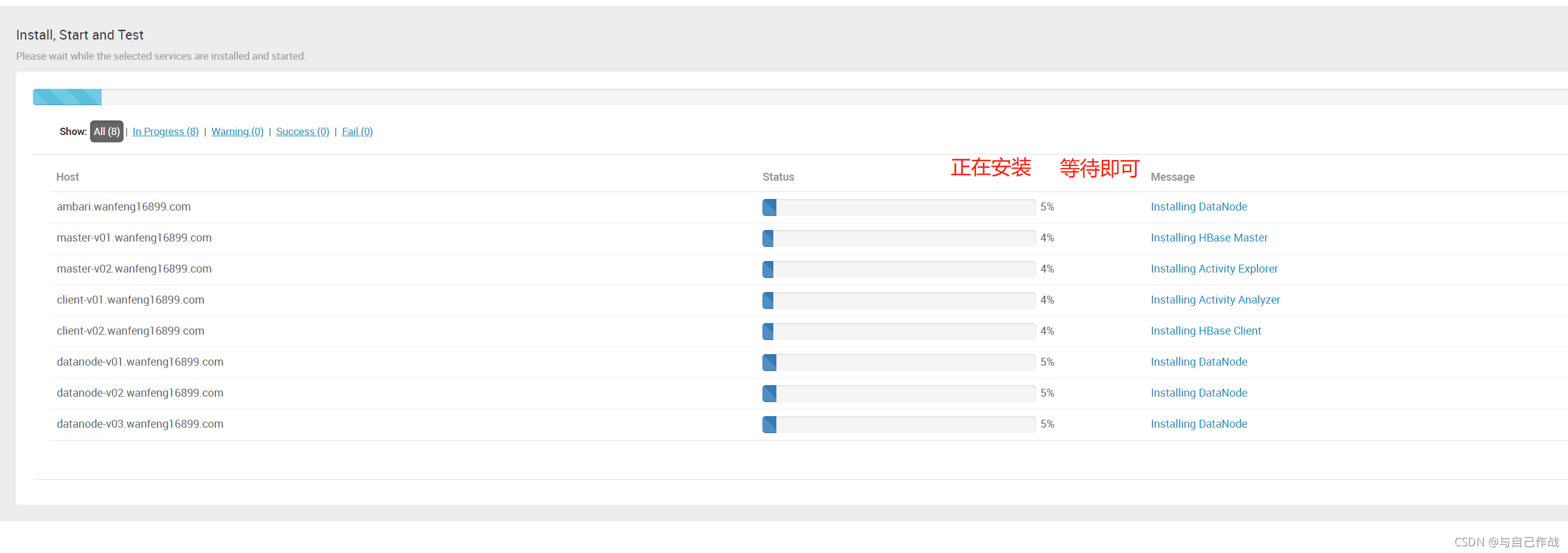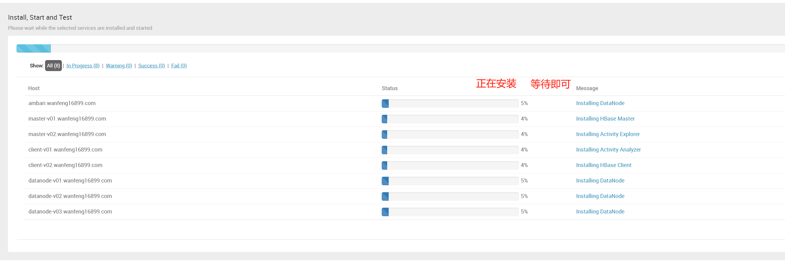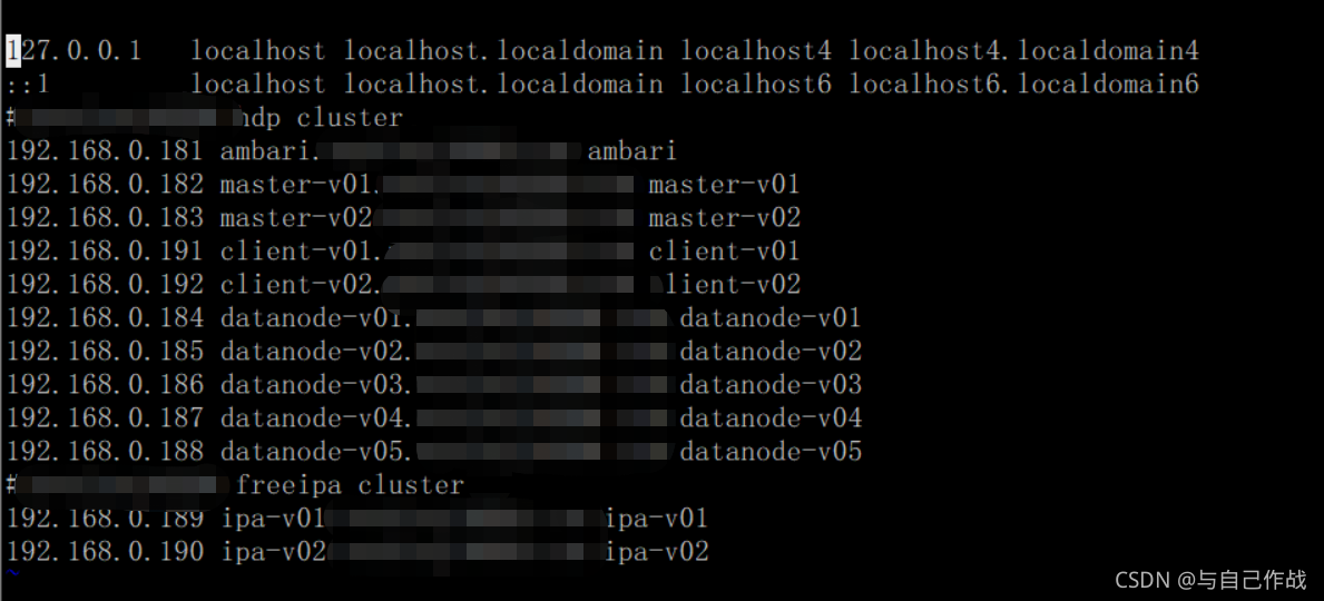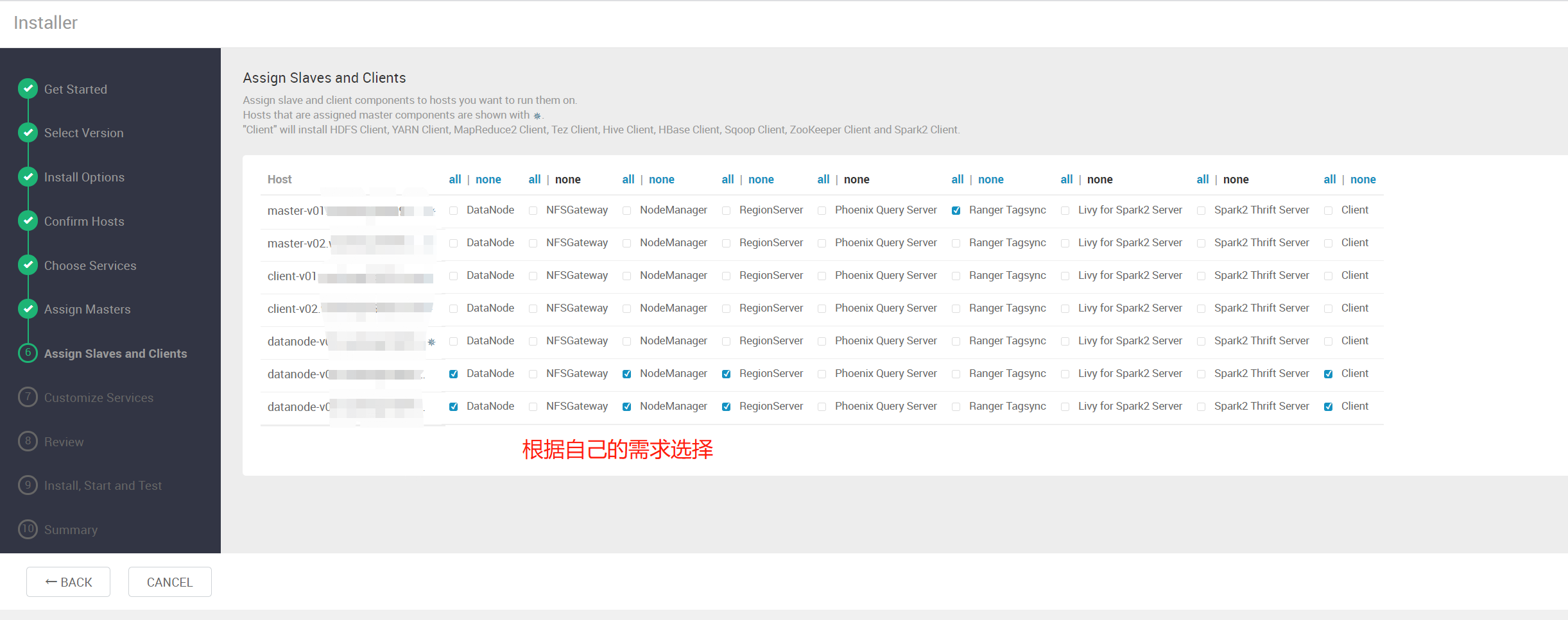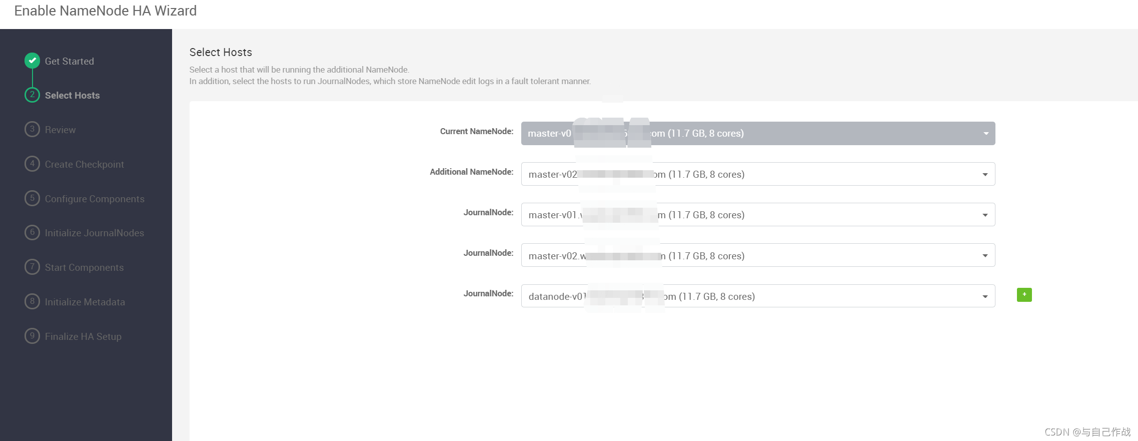 基中主要包括:hdfs, yarn, hbase 的高可用相关进程; Hive metadata, Hive server进程 及 Zookeeper进程等