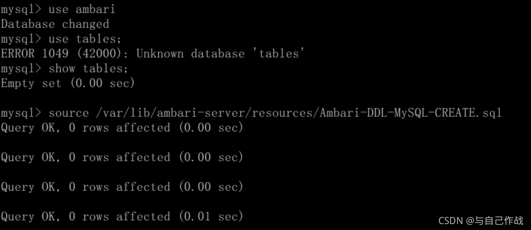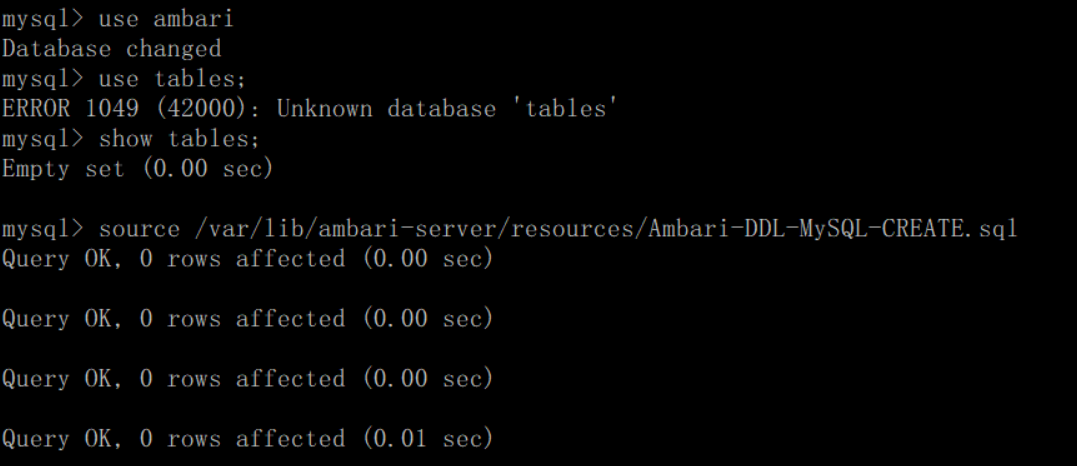 source /var/lib/ambari-server/resources/Ambari-DDL-MySQL-CREATE.sql