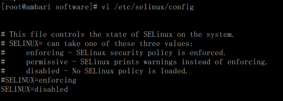 ls /etc/selinux/config |xargs perl -pi -e 's|SELINUX=enforcing|SELINUX=disabled|g'