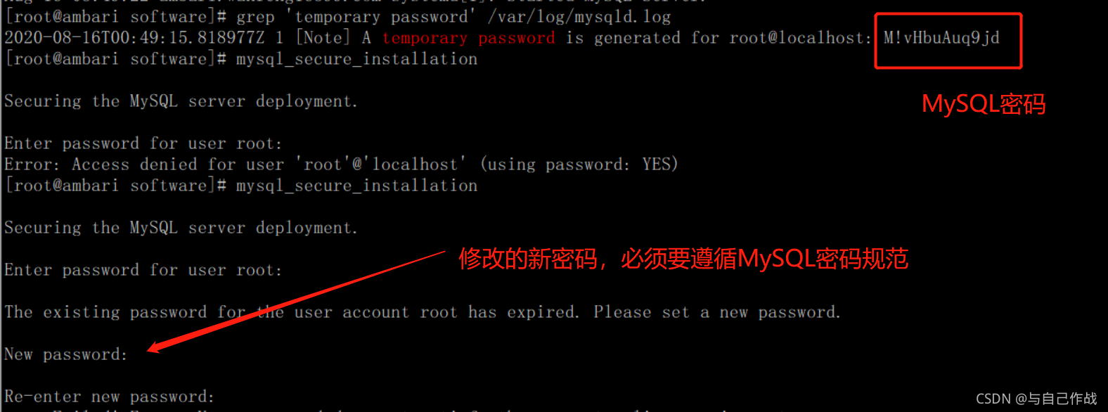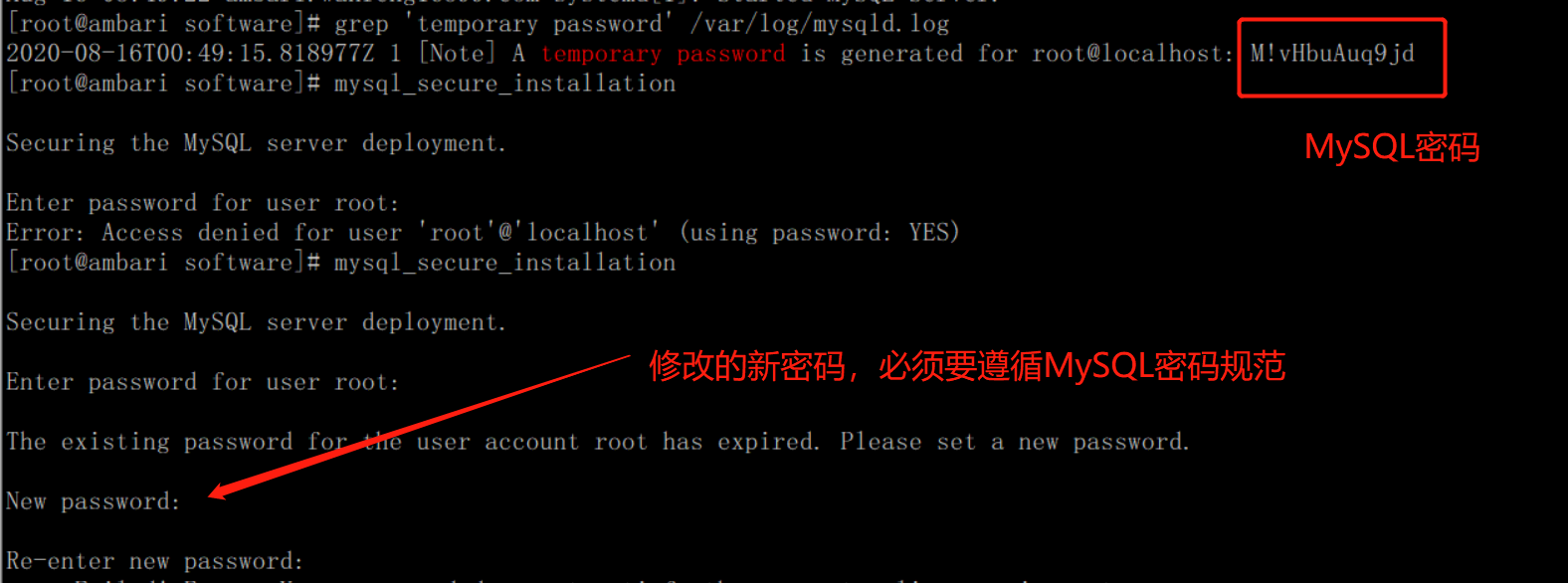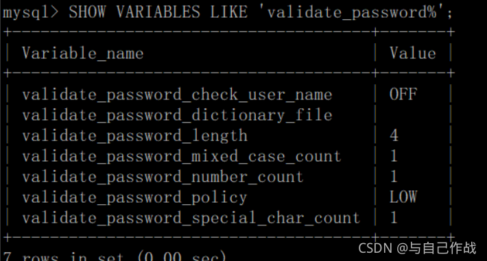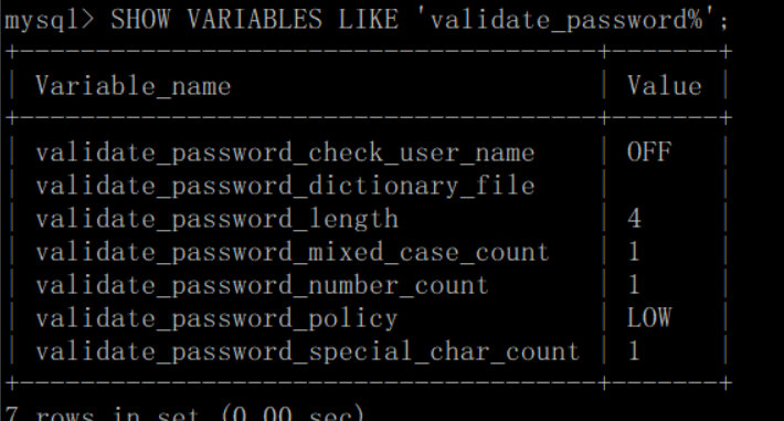 也可以登录MySQL以后在设置密码和降低密码复杂度:mysql -u root -p 密码