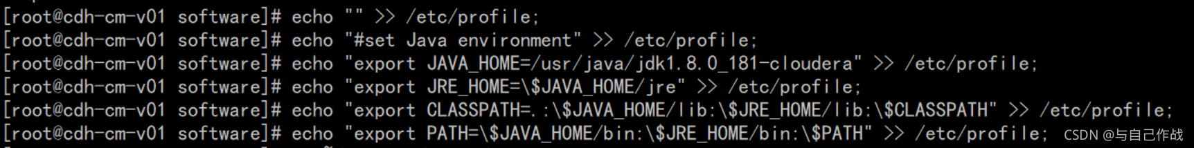 echo "export JAVA_HOME=/usr/java/jdk1.8.0_181-cloudera" >> /etc/profile;