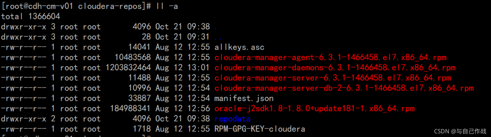 1.1、将下载的下列软件放置到cloudera-repos目录