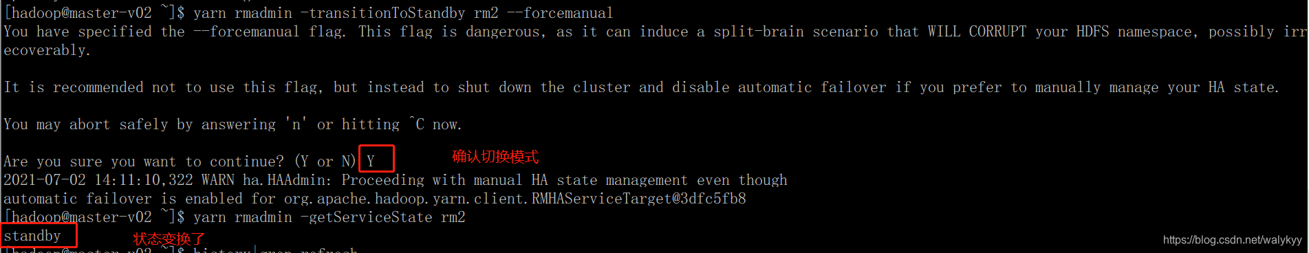 yarn rmadmin -transitionToStandby rm2