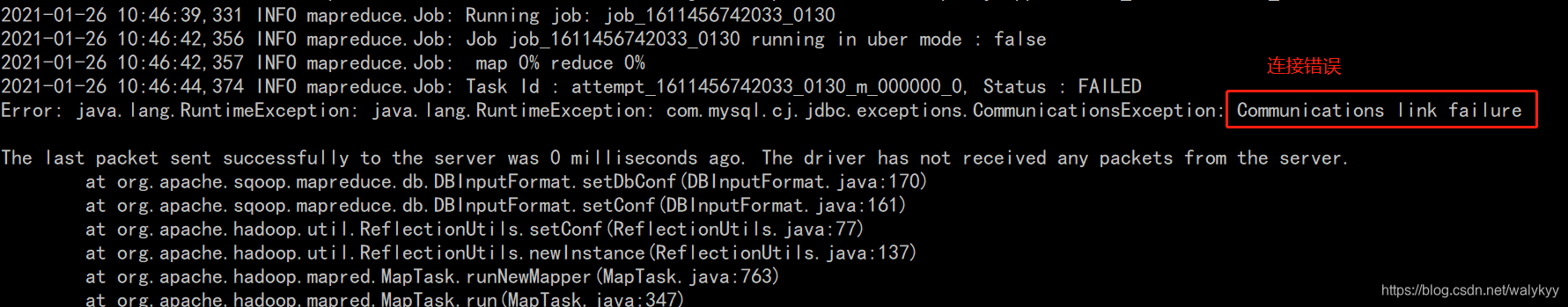 SQOOP com.mysql.cj.jdbc.exceptions.CommunicationsException: Communications link failure