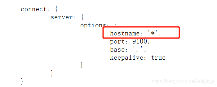 - 修改Gruntfile.js ---增加 hostname: '*'
