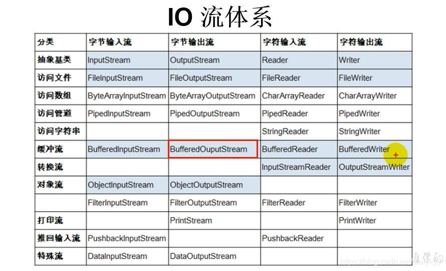 抽象基类 节点流(或文件流) 缓冲流(处理流的一种)