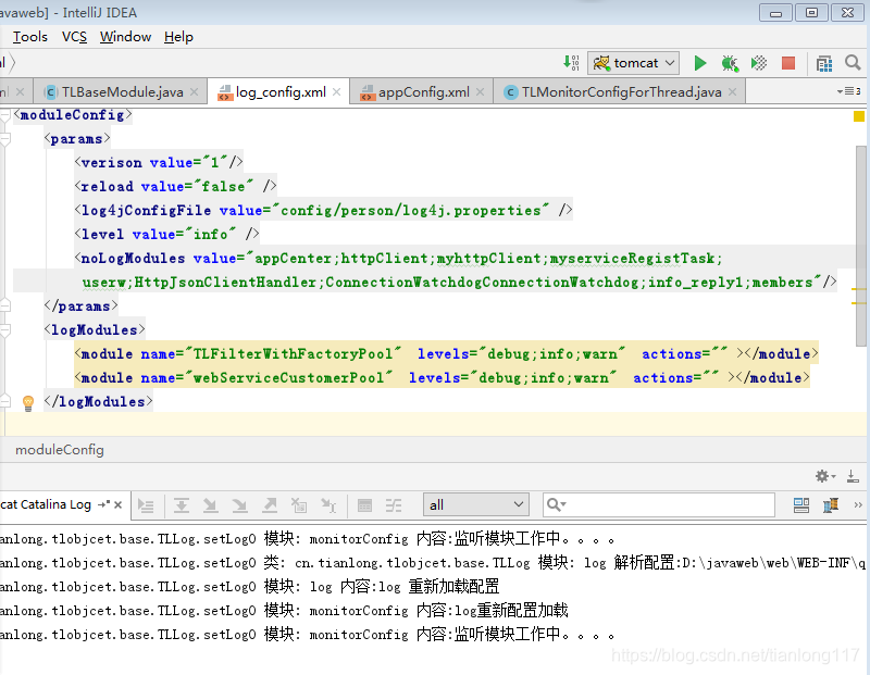 第一步:更改模块工厂里面的配置 ,将log 指向新类 TLNewLog