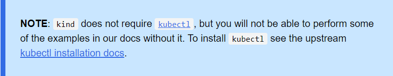 从官方文档可以看到,kind不需要kubectl,因此需要单独安装kubectl才能使用该命令。