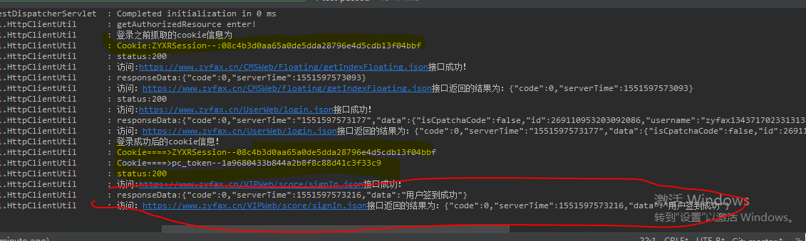 - 需要说明的是,通过httpclient模拟浏览器登录,最重要的就是cookie信息的携带,经过测试需要在登录之前使用一个get接口访问获取必要的cookie信息,然后通过post请求登录接口进一步完善cookie信息,最后就是目标接口了。