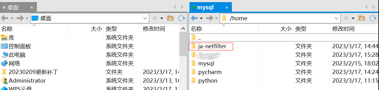 2、使用xftp将压缩包上传到pycharm目录下,并解压