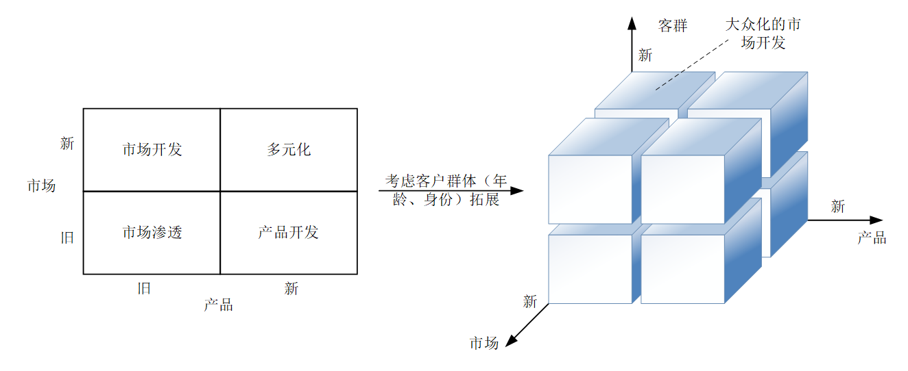 根据以上分析,考虑拓展鲁梅尔特关于企业增长战略的模型,本文从其原有的市场、产品的二维求新策略模型增加为包括客群增长在内的三维模型(见图2)。从原有的产品和市场角度看,立顿固定主打产品,一条路通向世界,市场区域灵活性则从发达国家向发展中国家的环境拓展中获得。更重要的是,客户群体的革新在立顿这一案例中是文化、观念层面的革新——将茶饮推下神坛,送到寻常百姓家。立顿采取的大众化市场开发策略配合其后续广告和数字媒体广告工具,在目标消费者群体中积极传播并突出其独特的品牌含义,成功塑造了消费者对品牌的看法,感觉和判断,从而提高了品牌知名度、独特而良好的形象以及在市场上的高购买行为忠诚度,快速打造了竞争壁垒。