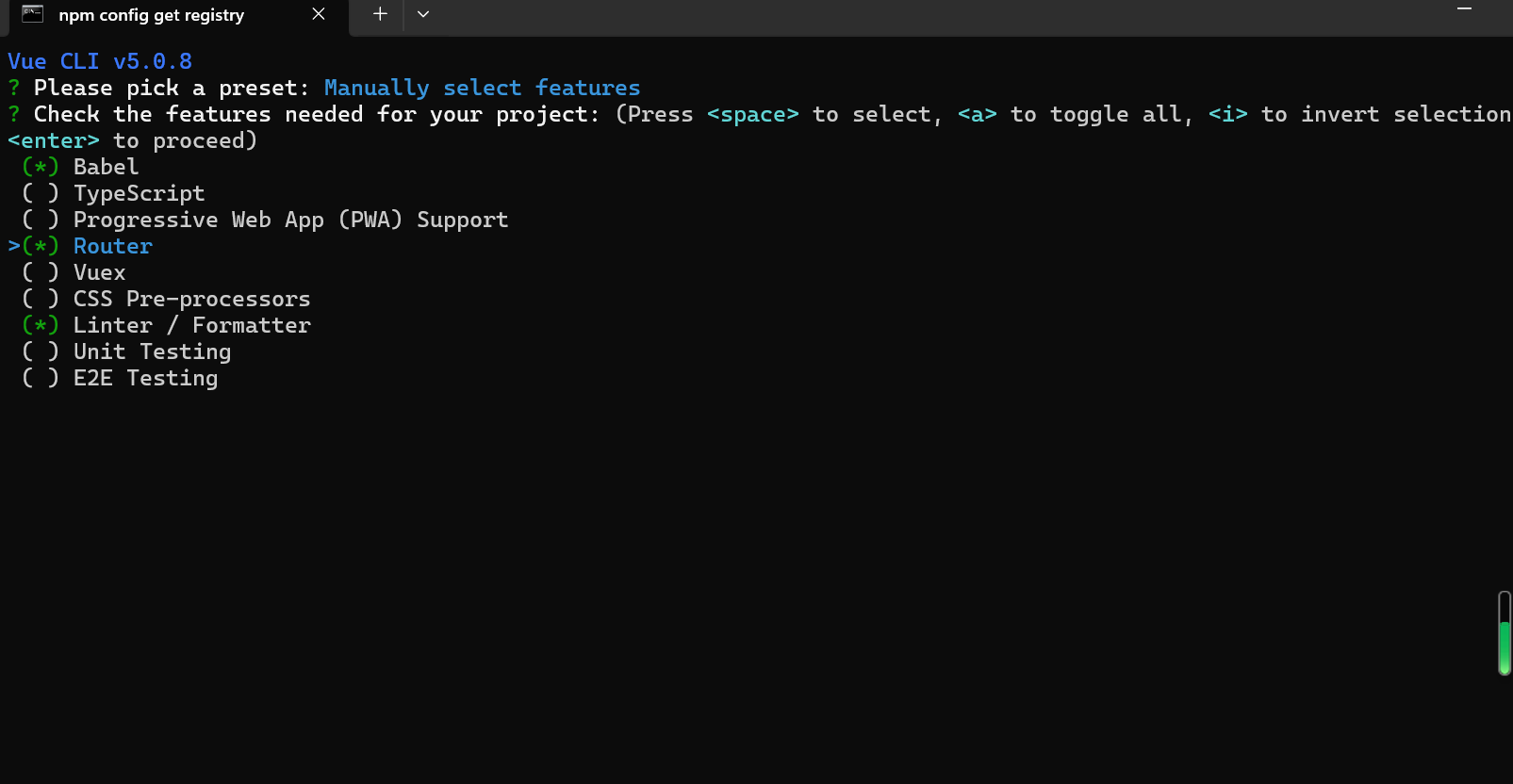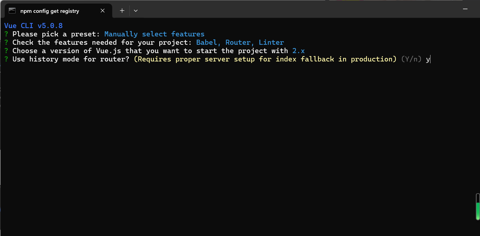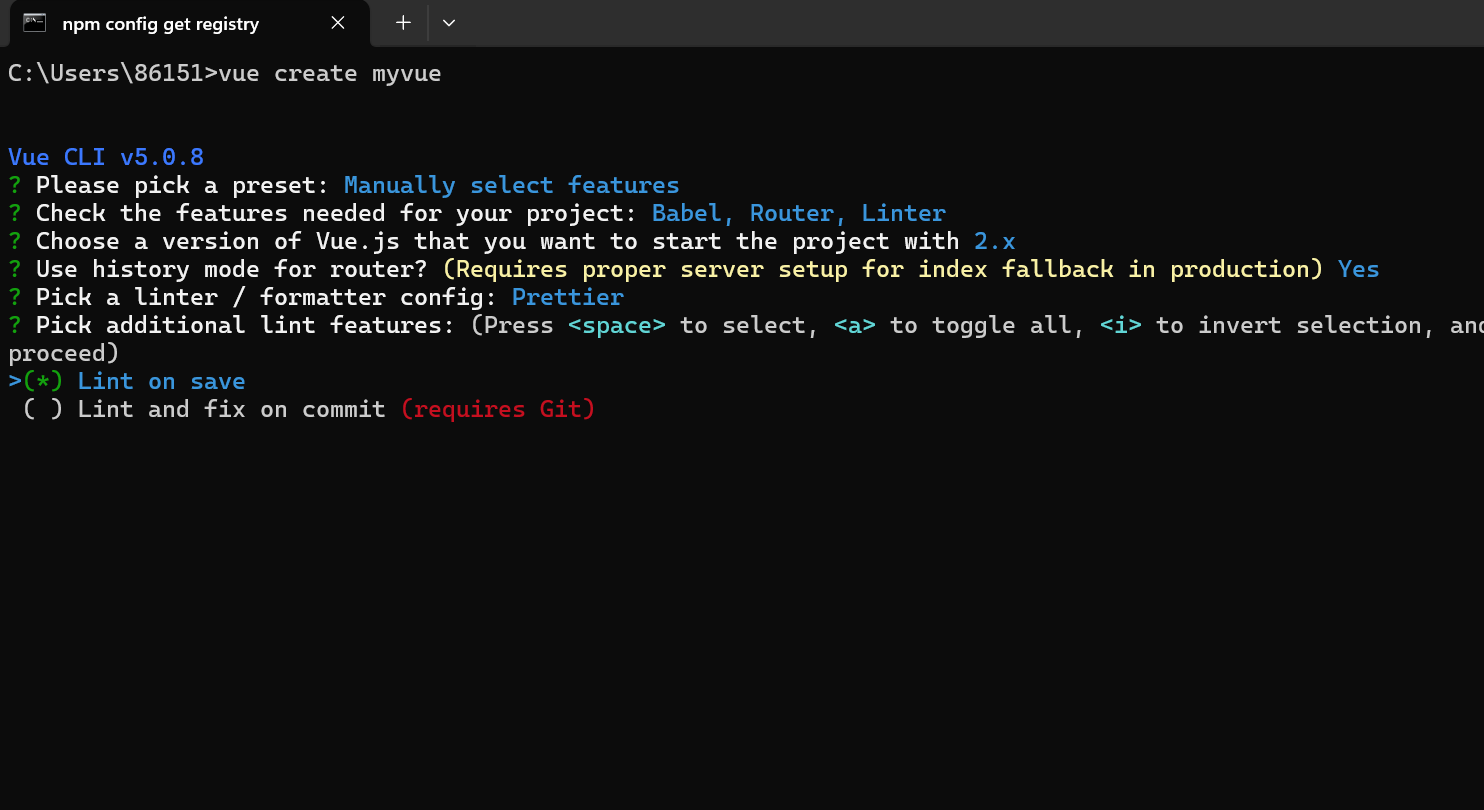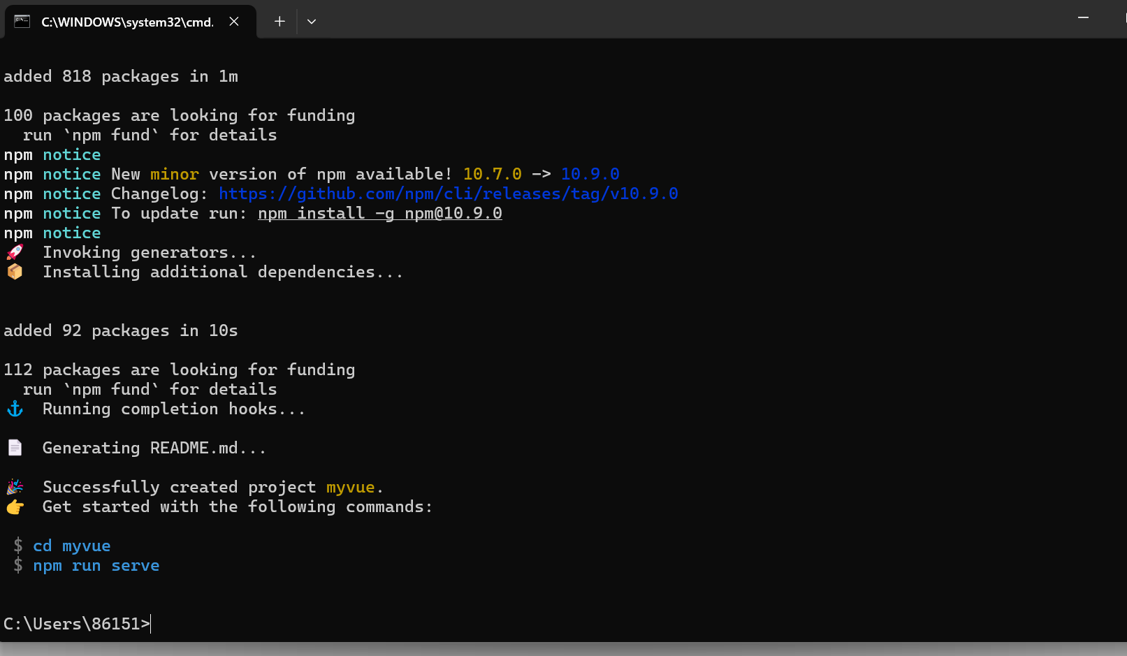 11.将生成的文件(myvue)在vscode中打开,输入 npm run serve即可成功。