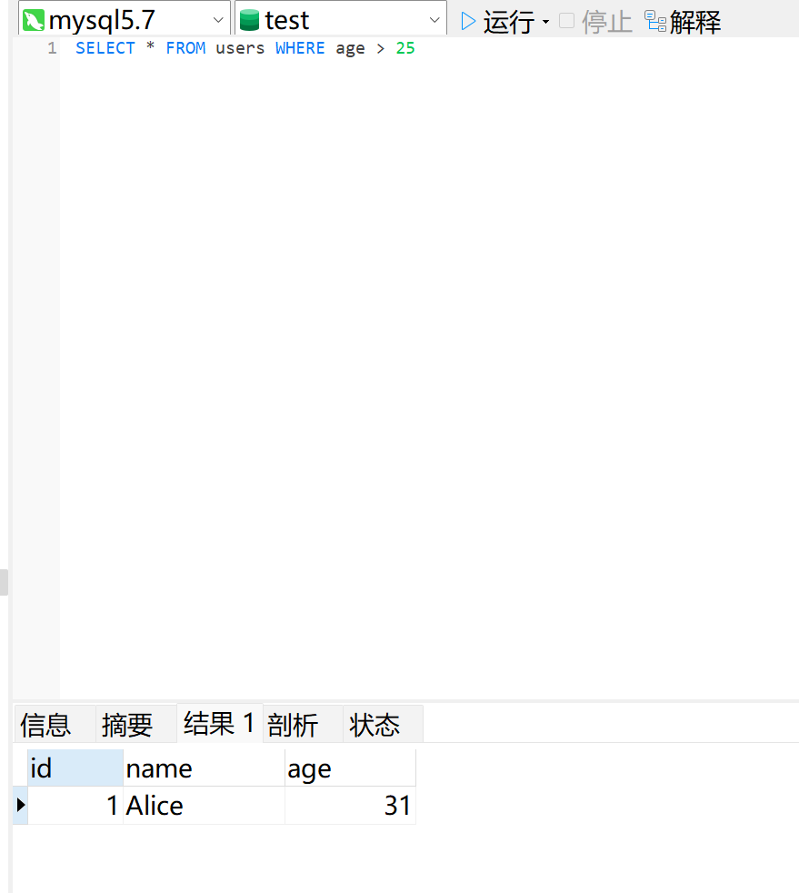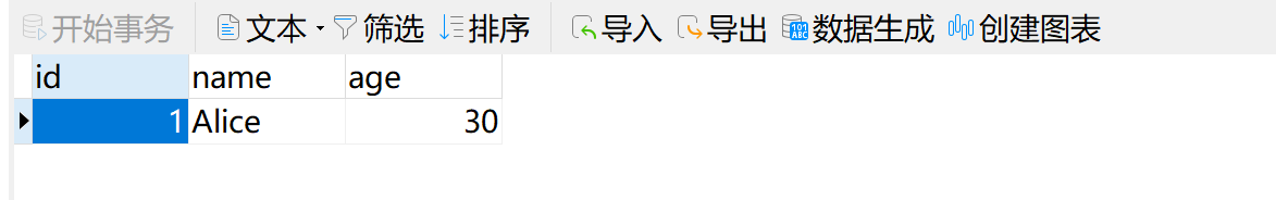 ID、Name、Age等 - 行(Record/Row):每行表示一条具体的数据记录,每行数据包含所有列的值