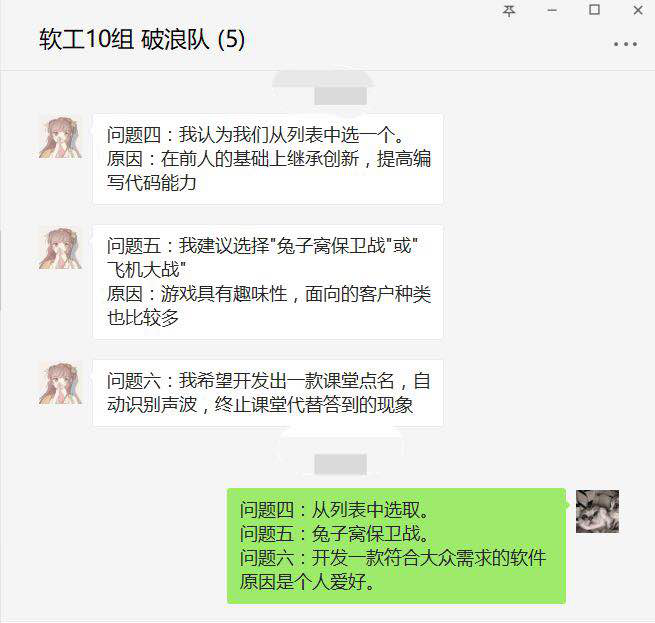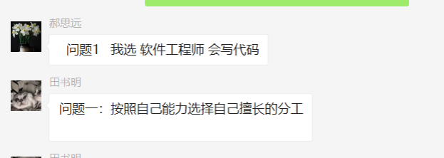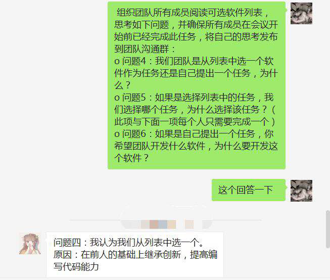 3.团队成员认真完成并思考了发布到团队沟通群的对问题(附成员对1,2,3的思考的截图)