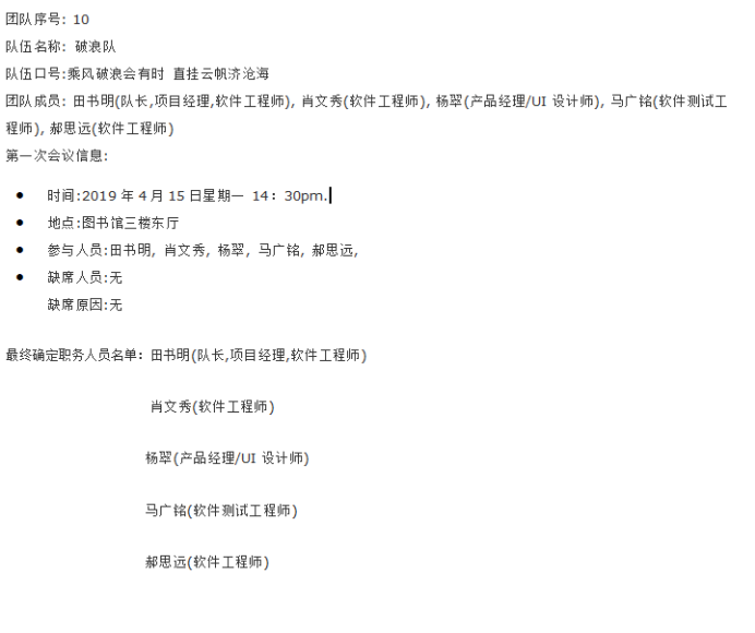 最终确定职务人员名单:田书明(队长,项目经理,软件工程师)