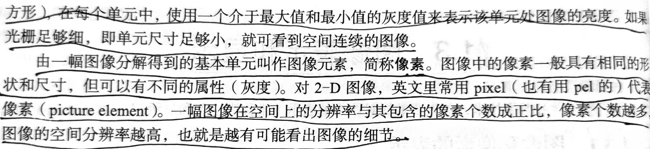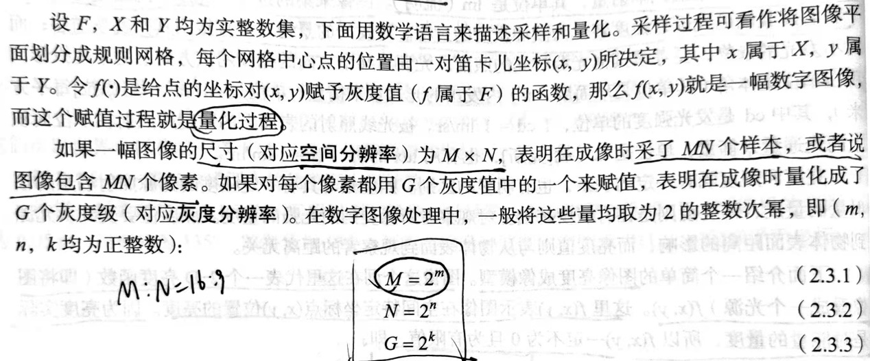 一幅(模拟)图像必须要在空间和灰度上都被离散化才能转化为数字图像,从而被计算机加工。空间坐标的离散化称为空间采样(简称采样),确定了图像的空间分辨率;而灰度值的离散化称为灰度量化(简称量化),确定了图像的幅度分辨率