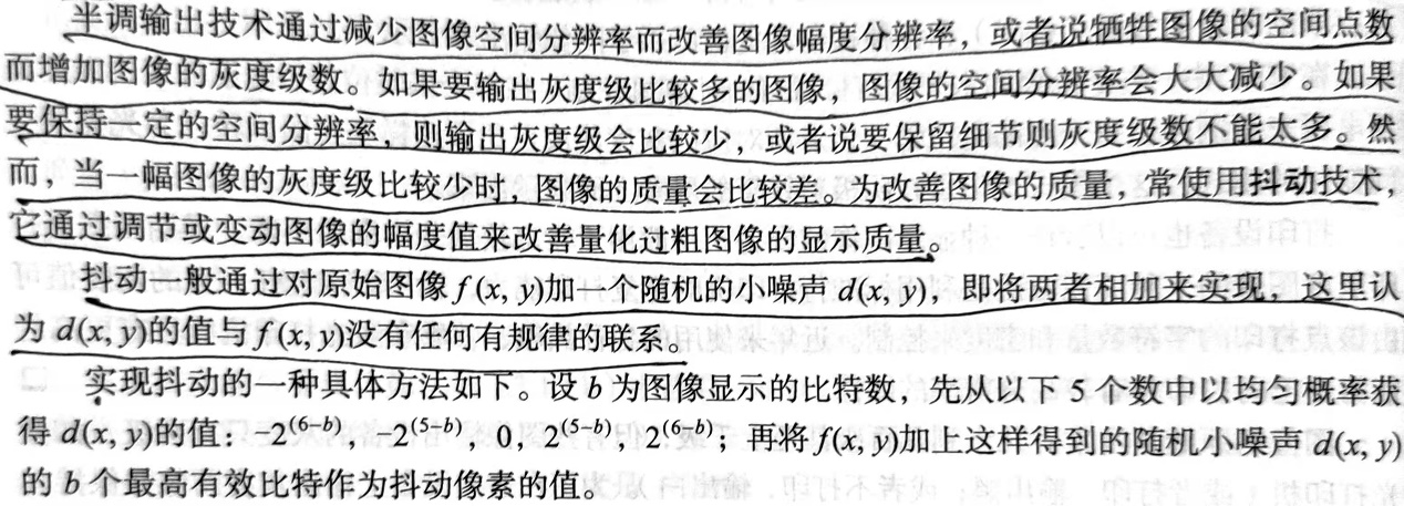 利用抖动技术可以消除一些由于灰度级数过少而产生的虚假轮廓,所叠加的抖动值越大,效果越明显。单抖动值得叠加也给图像带来了噪声,抖动值越大,噪声影响也越大