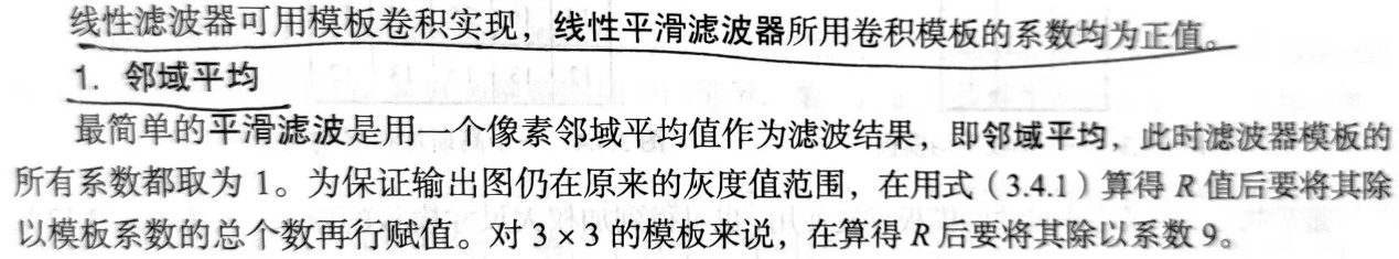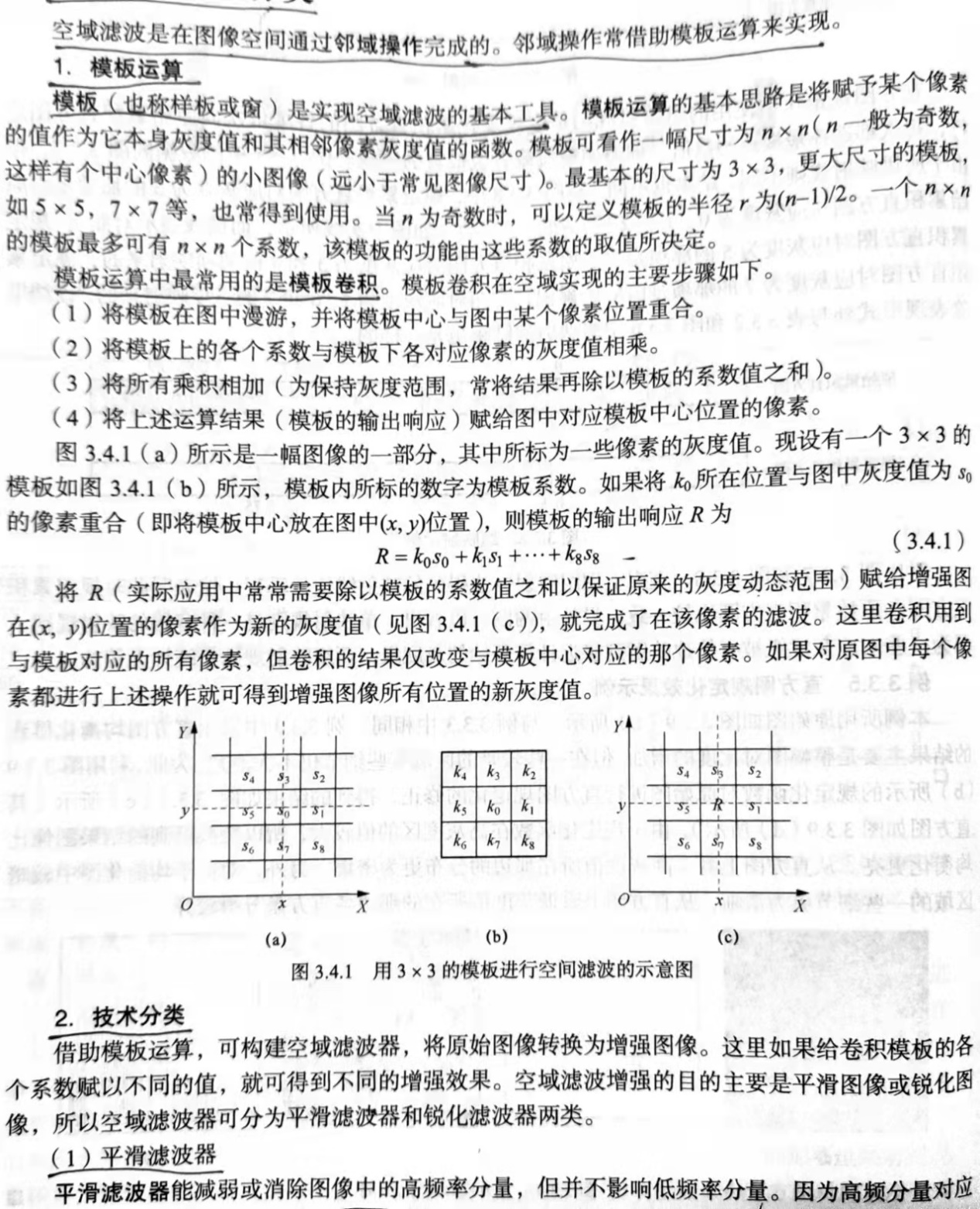 模板操作(邻域操作):增强操作定义在每个(x,y)的某个邻域。通过设计模板系数来实现不同的增强操作