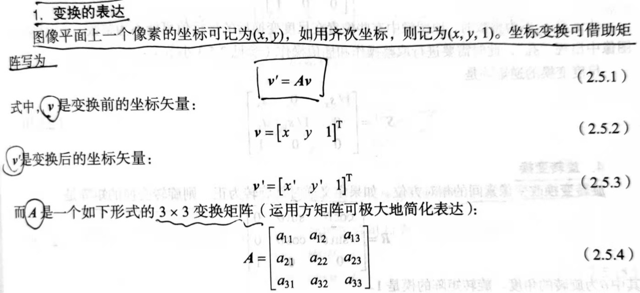投影变换(成像变换,几何透视变换):用照相机或摄像机进行图像采集时要将3-D空间的客观场景投影到2-D空间的图像平面