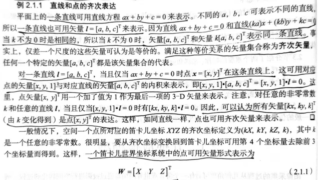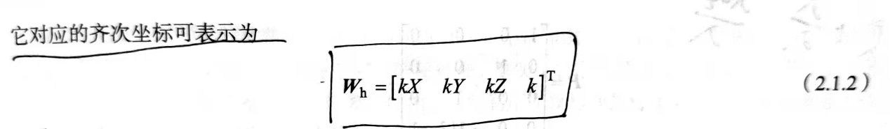 2、齐次坐标:在进行不同坐标系统之间的转换时,如果能将坐标系统用齐次坐标的形式表达,就能将各坐标系统之间的转换表示成线性矩阵形式