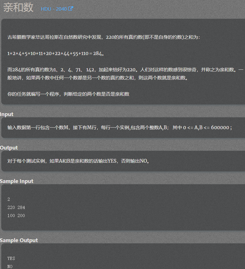 // 判断真约数之和是否相等,若是则返回“YES”,否则返回“NO”