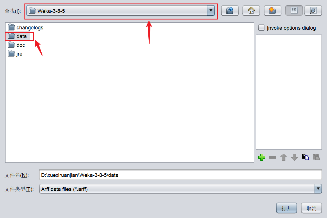 (3)打开weka文件中的data文件夹,其中有weka自带的数据集