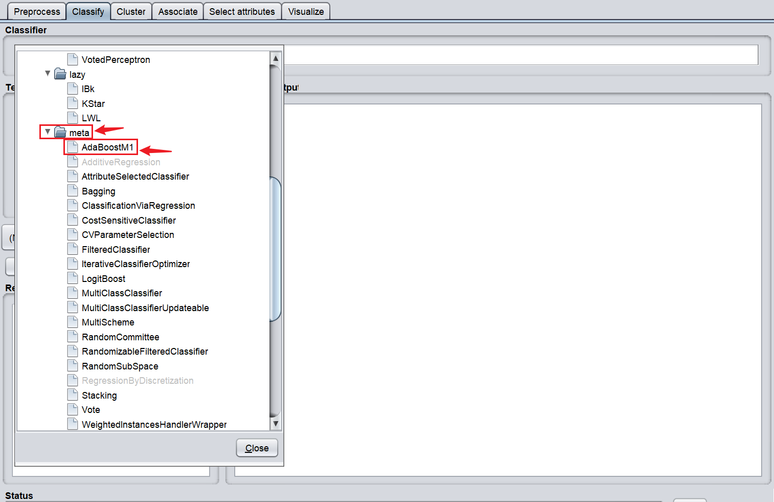 (7)按如下图选择AdaBoost分类器,这里读者也可以选择自己所需的分类器